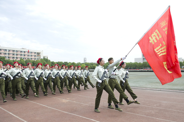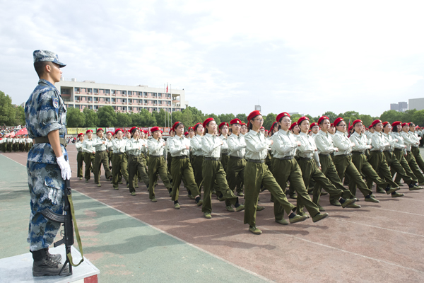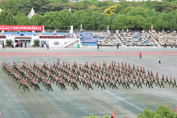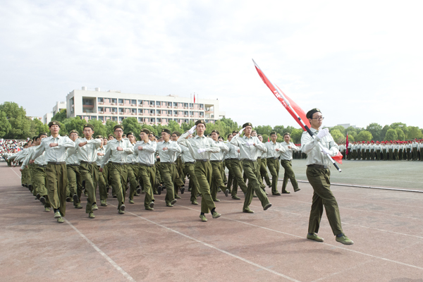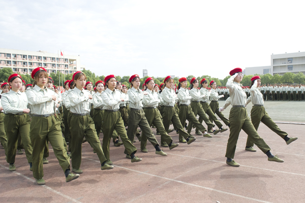 阅兵分列式开始后,各学院方队以高昂的士气迈着整齐划一的步伐,高喊响亮的口号,走过检阅台。新生良好的精神状态和军政素质,赢得了学校领导和军训首长的高度肯定。