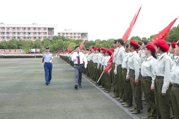 “同学们好,同学们辛苦了!”校长董仕节健步走过每一个新生方阵,检阅军训成果。“首长好!”“为人民服务!”同学们回答声响彻操场。