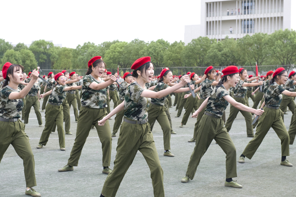 温兴生指出,军训是打造一流本科教育的重要环节,是学生更高质量学习经历的重要体现,也是学校培养“三有三实”人才的重要途径。作为经院新生,如何度过大学四年?他认为要养大气、长志气、接地气。“养大气”即要树立远大理想,热爱伟大祖国,把小我融入到祖国的大我、人民的大我之中,听党话、跟党走,自觉树立和践行社会主义核心价值观,让理想信念在奋斗中升华,让爱国情怀在奉献中绽放。“长志气”即要胸怀大志,保持初生牛犊不怕虎、越是艰险越向前的刚健勇毅,在担当中历练,在尽责中成长,明大德、守公德、严私德,切实担起时代赋予的使命和责任,在追梦的路上昂扬向前。“接地气”即要养成艰苦奋斗的品质,把更多的时间和精力放在掌握科学知识、提高内在素质、锤炼过硬本领上,在挫折中学会奋起,在困境中勇敢前行。要走下网络、走出宿舍、走向操场,保持过硬的身体素质,为成长积蓄更大能量,让青春在持续奋斗中闪光。