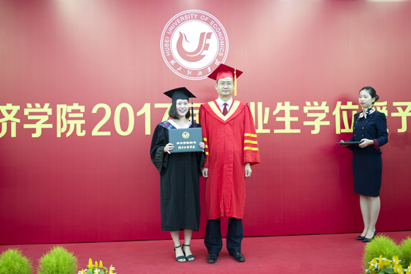 温兴生、鲁晓成、何慧刚为2017届毕业生颁授学位证书并合影留念。