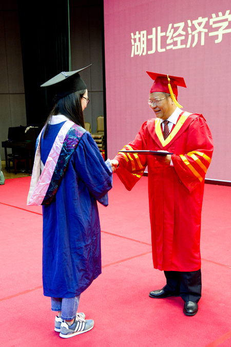 他寄语经院人要坚守理想、矢志不渝。从1907年开办湖北商业中学堂到如今的湖北经济学院,经院人从来就有一种心怀理想、逐梦前行的传统。无论世界如何变幻,我们内心深处坚守的理想、精神和境界不变。希望同学们始终坚守理想,即便遇到艰难困苦,仍能感受到生活的勇气和希望。