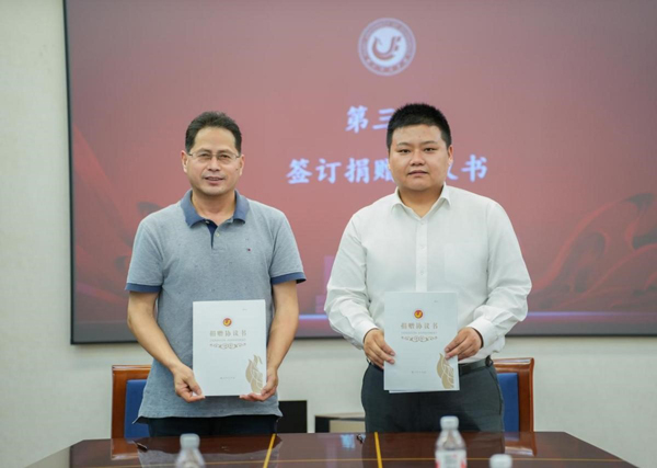 双方代表签订捐赠协议书。合作发展处处长、教育发展基金会秘书长宋健为金友玉颁发捐赠证书。