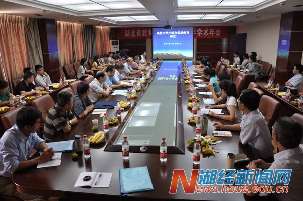 会议主题为“建设教育强省,服务‘五个湖北’”。武汉大学、华中科技大学等十几所高校的专家学者及在鄂高校部分教育经济与管理研究生近60人参加了会议。