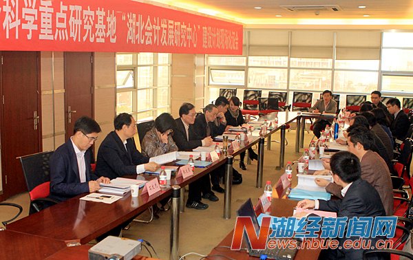 本网讯(特约记者 黄益雄 摄影邹冉) 4月16日,我校湖北会计发展研究中心申报湖北省高校人文社会科学重点研究基地现场论证会举行。华中师范大学人文社科高等研究院副院长石挺教授、武汉大学经济管理学院廖洪教授、武汉理工大学总会计师张友棠教授、华中科技大学科学技术发展院副院长兼人文社科处处长刘洁教授、中南财经政法大学MPAcc中心主任张敦力教授、中国地质大学管理学院会计系主任李月娥教授、众环海华会计师事务所总经理石文先等专家参加评审。副校长吴少新,科研处、研究生处、会计学院负责人和教师代表参加会议。
