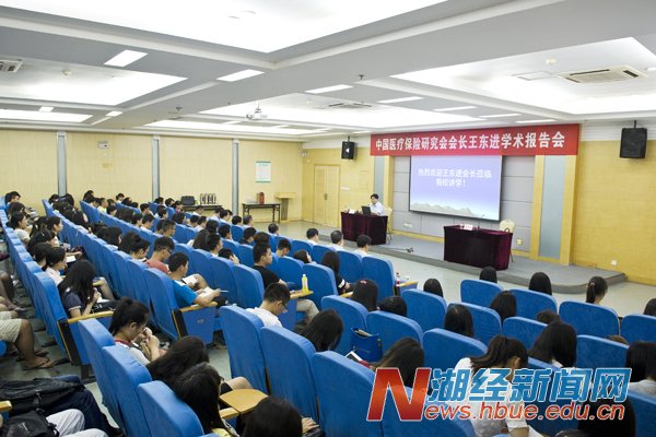 本网讯(通讯员 杨晓天 摄影 陶慧)6月3日,中国医疗保险协会会长、我校特聘教授王东进来校作“关于全民医保常态化发展”的学术报告。校党委书记温兴生、省人社厅相关部门负责人、中南财经政法大学等高校医保专家及我校师生200余人参加报告会。副校长陈向军主持。