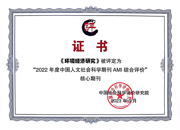 本网讯 近日,中国社会科学评价研究院发布了中国人文社会科学期刊AMI综合评价报告(2022年)。《环境经济研究》在环境科学学科被评定为“2022年度中国人文社会科学期刊AMI综合评价”核心期刊。