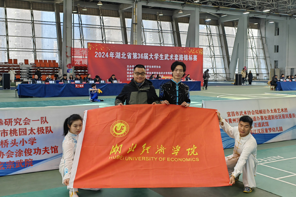 本网讯 12月27日至29日,湖北省第36届大学生武术套路锦标赛在湖北大学举办。休闲体育2241班吴成文获男子甲组32式太极剑第一名、24式简化太极拳第二名。休闲体育2341班向华镱获男子甲组自选棍术第四名、自选拳术第六名。休闲体育2242班朱洁获女子甲组24式简化太极拳第六名、32式太极剑第六名。学生参赛团队领队张诚、教练吕新旺。