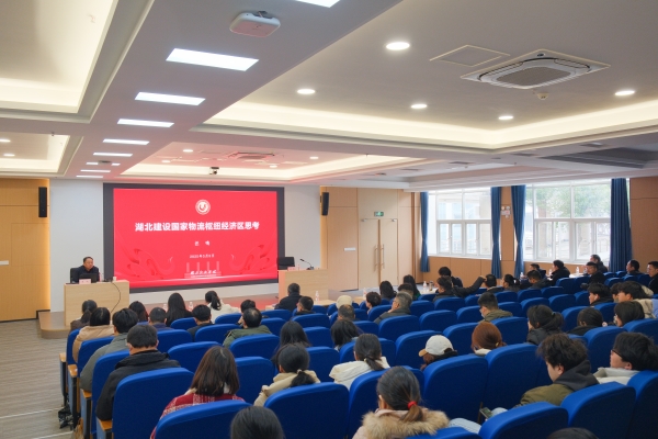 本网讯 3月5日,学校举办“湖经大讲堂”第五讲,中国宏观经济研究院(国家高端智库)高级顾问专家、西部陆海新通道智库专家委员会成员、国家发展和改革委员会综合运输研究所原所长汪鸣作《湖北建设国家物流枢纽经济区思考》主题报告。副校长付宏主持。