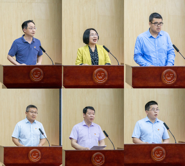副校长张国安、付宏,党委统战部常务副部长汤中秋,教师发展中心主任彭芸,财政与公共管理学院院长魏涛,工商管理学院党委书记车纯贤,统计与数学学院院长张耀峰,低碳经济学院副院长刘习平,分别围绕学习主题,结合自身学习和工作实际进行交流发言。