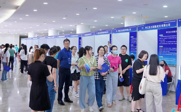 本网讯 6月16日,“才聚荆楚·百县进百校”咸宁市2023年湖北经济学院专场招聘会在我校举办。咸宁市组织107家企业组团走进我校,面向大学生提供优质就业岗位2344个,并与学校签订人才战略协议。校党委副书记汪达、咸宁市副市长李丽出席。