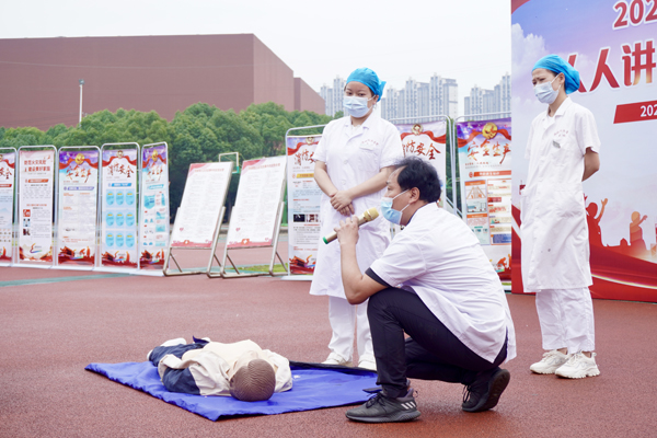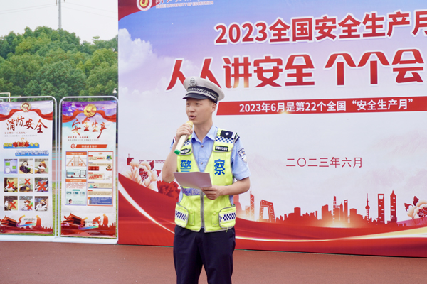 江夏区消防救援大队栗庙消防站消防员介绍了干粉灭火器的使用方法和注意事项。藏龙岛交通直属中队交警进行交通安全方面的宣传教育,介绍了电动车交通法规和超载超速存在的安全隐患,并通过讲解真实案例向同学们宣讲使用电动车时要戴头盔、不超载、走非机动车道等知识。藏龙岛派出所民警举例常见的电信诈骗手法和财物易被盗窃的场所,提醒学生准确识别诈骗行为,保护好个人财物,并叮嘱同学们在校内外注意人身安全。后勤集团饮食服务中心负责人强调不购买“三无”食品,不食用无餐饮证的街边食品,食用前检查食物是否变质并给在场学生分享“食品安全顺口溜”。校医院医生借助模具还原人员晕倒急救真实场景向学生传授胸部按压、人工呼吸的急救知识。学工处老师介绍学校心理咨询工作。