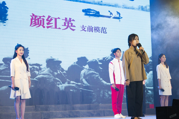 “十八岁,是什么样的?” 三个表演者分别扮演来自1949年的颜红英、1979年的章华妹、2008年的华天。表演者们在情景朗诵《那一年,中国青年正十八》中给出了这三名十八岁青年的答案。他们的声音铿锵有力、掷地有声,字字句句间展现了三人对共产党解放中国、人民追求美好生活、中国谋求发展充满信心的青年形象。