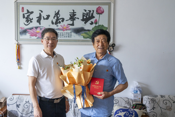 本网讯 6月30日,校党委副书记汪达带领党委组织部、离退休工作处负责人走访慰问了老党员。汪达通报了学校发展情况,并代表校党委对老党员为党和学校事业作出的贡献表达感谢。汪达与老党员话家常,聊近况,了解老党员的身体、生活情况,叮嘱老党员保重身体,并将“光荣在党50周年”纪念章和慰问金送到老党员手中。老党员表示,切实体会到了党和国家对老同志的关心和关爱。人老心不老,只要党和国家有号召,一定积极响应,并将继续发挥自己的余热,为学校的发展和建设贡献力量。