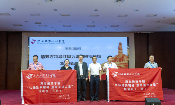王延兴和汪达共同为研修班授班旗。