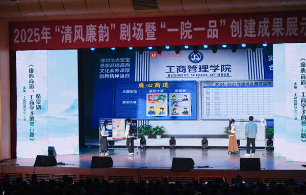 成果展示环节,9个二级单位立足自身特色,把抽象的廉洁理念转化为生动的情景剧、小品和歌舞等文艺作品,为观众呈现一堂沉浸式的廉政党课。信息工程学院情景剧《经院信风》,用校友陈涛的成长故事传递“知识改变命运,清廉守护未来”的价值追求。法学院以模拟法庭的形式呈现《一堂特殊的“廉洁教育课”》,将法律知识与腐败案例有机结合,在沉浸式体验中强化师生的廉洁意识与法治观念。会计学院情景剧《跨越时空的廉洁传承——会院人的新时代答卷》,生动演绎了会计人用一支笔书写“坚持准则、不做假账”的信仰和传承。校医院医护人员表演的《医者仁心满春归》,通过温情故事展现医护人员恪守医德医风、守护师生健康的高尚品质。工商管理学院情景剧《廉心商道:工商学子的修行路》,展现了学院通过“廉心商道”主题活动育人实践,引导学生将廉洁自律内化为价值追求与行为习惯。纪委监专办与校团委联合推出的小品《歧路》,聚焦家庭价值观塑造,通过生活化的剧情展现家庭教育对子女走好人生廉洁路的重要意义。财政与公共管理学院情景剧《初心不改》,展现了学院通过系统的课堂与日常教育,引导学生树牢廉洁意识、系好廉洁从业的“第一粒扣子”。离退休工作处带来的歌舞表演《心中的莲》和《壮美延安》将活动推向高潮,让现场观众深切感受到老一辈教育工作者对廉洁初心的终生坚守。