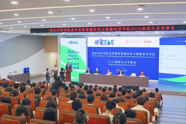 2025年9月23日,湖北经济学院弗罗斯特堡碳经济与数据科学学院2025级新生开学典礼举行。