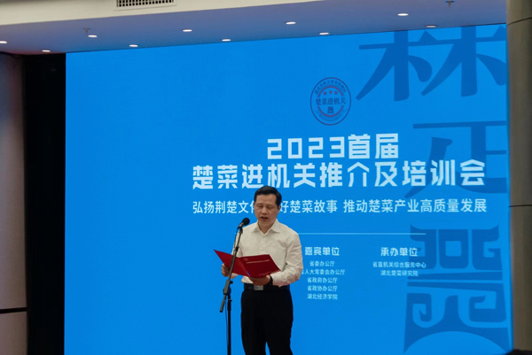 本网讯(通讯员 李加红)7月19日,为深入贯彻省政府关于推动楚菜创新发展的部署要求,湖北楚菜研究院以“弘扬荆楚文化,讲好楚菜故事,助推楚菜产业高质量发展”为主题,联合湖北省机关事务局在武汉举办首届楚菜进机关推介及培训活动。省机关事务局党组书记、局长管俊,湖北省荆楚文化研究会副会长刘玉堂,副校长张国安,中国烹饪大师卢永良,湖北楚菜研究院院长邹志平出席。