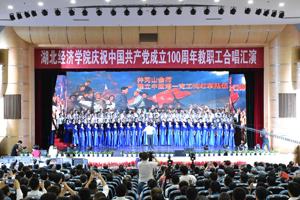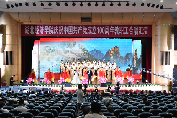 法商学院《没有共产党就没有新中国(京剧版)》、机关工会《歌唱祖国》、湖北亿优物业管理有限责任公司《十送红军》获得一等奖。艺术设计学院《幸福中国一起走》、经济与贸易学院《在太行山上》、财政与公共管理学院《四渡赤水》、后勤集团《不忘初心》、财经高等研究院、低碳经济学院《国家》获二等奖。外国语学院《灯火里的中国+少年》、体育经济与管理学院《红旗飘飘》、图书馆《爱我中华》、金融学院《在灿烂的阳光下+没有共产党就没有新中国》、校医院《在灿烂的阳光下+英雄赞歌+东方为什么红》获三等奖。