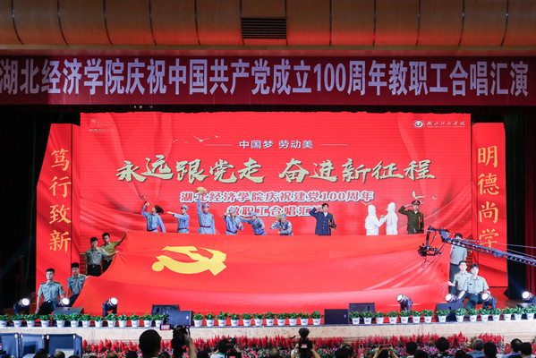 本网讯(记者 曹权耀 侯旭迪 摄影 曾雅欣 彭文婕 苏雅蔓 鞠晴 黄倩)6月24日,我校全体教职工欢聚大学生活动中心一号报告厅,举办“中国梦·劳动美——永远跟党走 奋进新征程”庆祝中国共产党成立100周年合唱汇演。校领导温兴生、鲁晓成、何慧刚、张国安、付宏出席并参加合唱汇演。