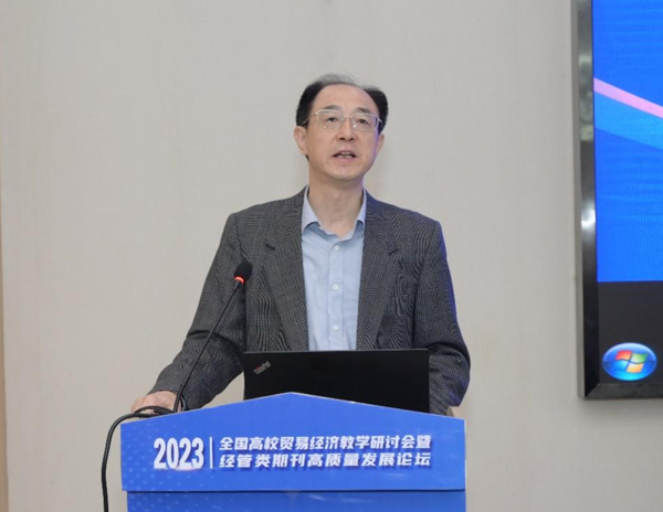 中国商业经济学会高校贸易经济教学研究工作委员会会长王晓东致辞