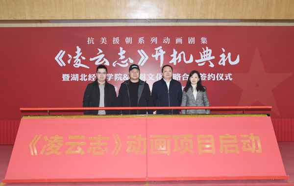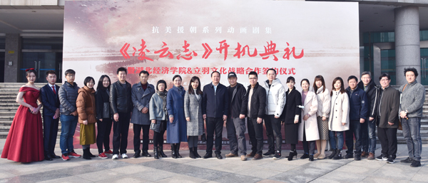 本网讯 12月10日,纪念抗美援朝战争70周年系列动画剧集《凌云志》在我校开机。副校长付宏、立羽文化科技有限公司创始人黄敏出席开机典礼。