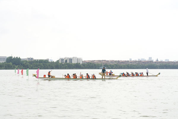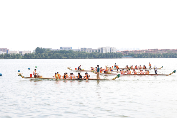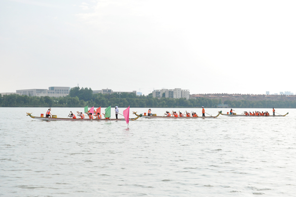 本网讯(记者 谢芳 杨秋凤 摄影 陶慧 曾慧 陈敏 曾权 钟贤毅 庞苏皖)6月6日,第十六届体育运动会龙舟比赛在汤逊湖水上训练基地举行。15支学生队伍经过预赛、复赛和决赛的激烈竞争,体育经济与管理学院夺冠,继续教育学院、艺术设计学院分获二、三名,工商管理学院、旅游与酒店管理学院、经济与贸易学院、法学院获得四至七名。20支教职工代表队参赛,图书馆代表队折桂,后勤集团、亿优物业代表队获亚军、季军,工商管理学院、艺术设计学院、外国语学院、经济与贸易学院、金融学院代表队获四至八名。