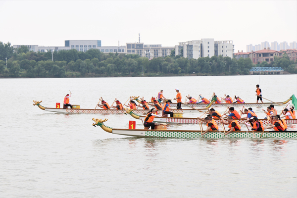 校领导温兴生、董仕节、刘大洪、鲁晓成、何慧刚出席,为龙头“点睛”。校党委书记温兴生宣布龙舟比赛开幕。副校长何慧刚致开幕辞,希望通过比赛传承中华传统文化,弘扬团结拼搏的体育精神。